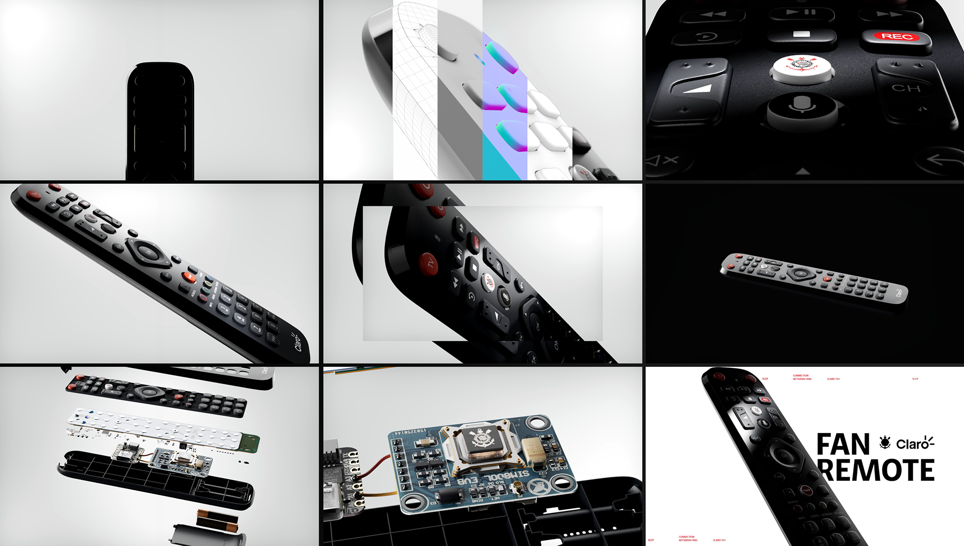 Experience the Fan Remote — a special edition created for Claro TV that connects Corinthians fans directly to their passion. A bold creative idea brought to life through a striking 3D visualization that became a key visual protagonist of the campaign, blending precision modeling, realistic shaders, and cinematic lighting to elevate the product’s emotional and technological presence.